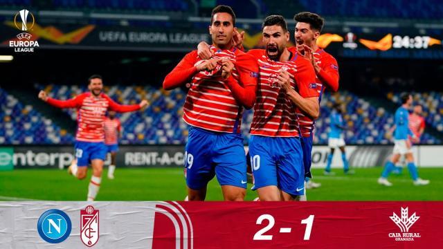 格拉纳达客场1比2负于那不勒斯,但凭借首回合2比0的胜利晋级。对于一家首次在欧战亮相的传统弱旅而言,每向前一步都在创造历史。这成就来之不易,开场2分钟,泽林斯基就远射破门扳回一城。但格拉纳达顶住了压力,并由中场蒙托罗在第24分钟打进几乎锁定晋级资格的头球。第59分钟,法维安·鲁伊斯借一次精彩的斜塞穿插再入一球。好在格拉纳达门将鲁伊·席尔瓦表现神勇,在补时阶段扑出对方势在必进的头球,没有留下任何悬念。