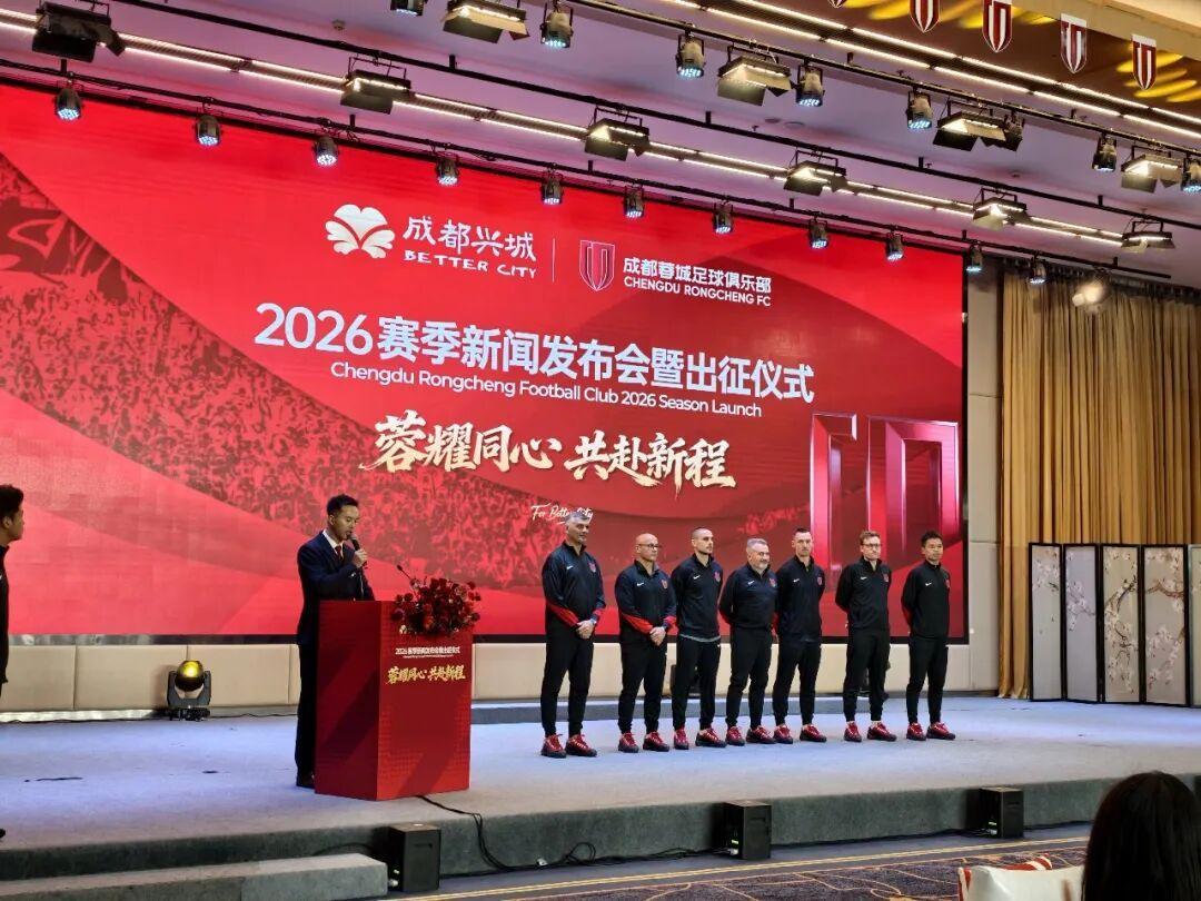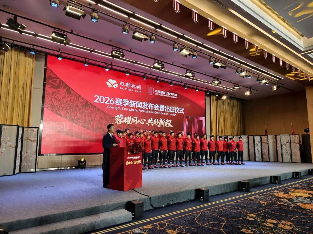 3月3日元宵节,成都蓉城足球俱乐部2026赛季新闻发布会暨出征仪式在蓉举行。市体育局、市足协相关负责人与俱乐部管理层、各界合作伙伴、赞助商代表、媒体朋友及球迷代表齐聚现场,共同为球队新赛季征程壮行。出征仪式上,新主帅约翰·阿洛伊西携教练团队亮相,明确新赛季球队目标将稳步向上,在中超赛场展现更强竞争力。队长韦世豪、新援球员及全体将士整装出征,正式开启2026赛季全新征程。